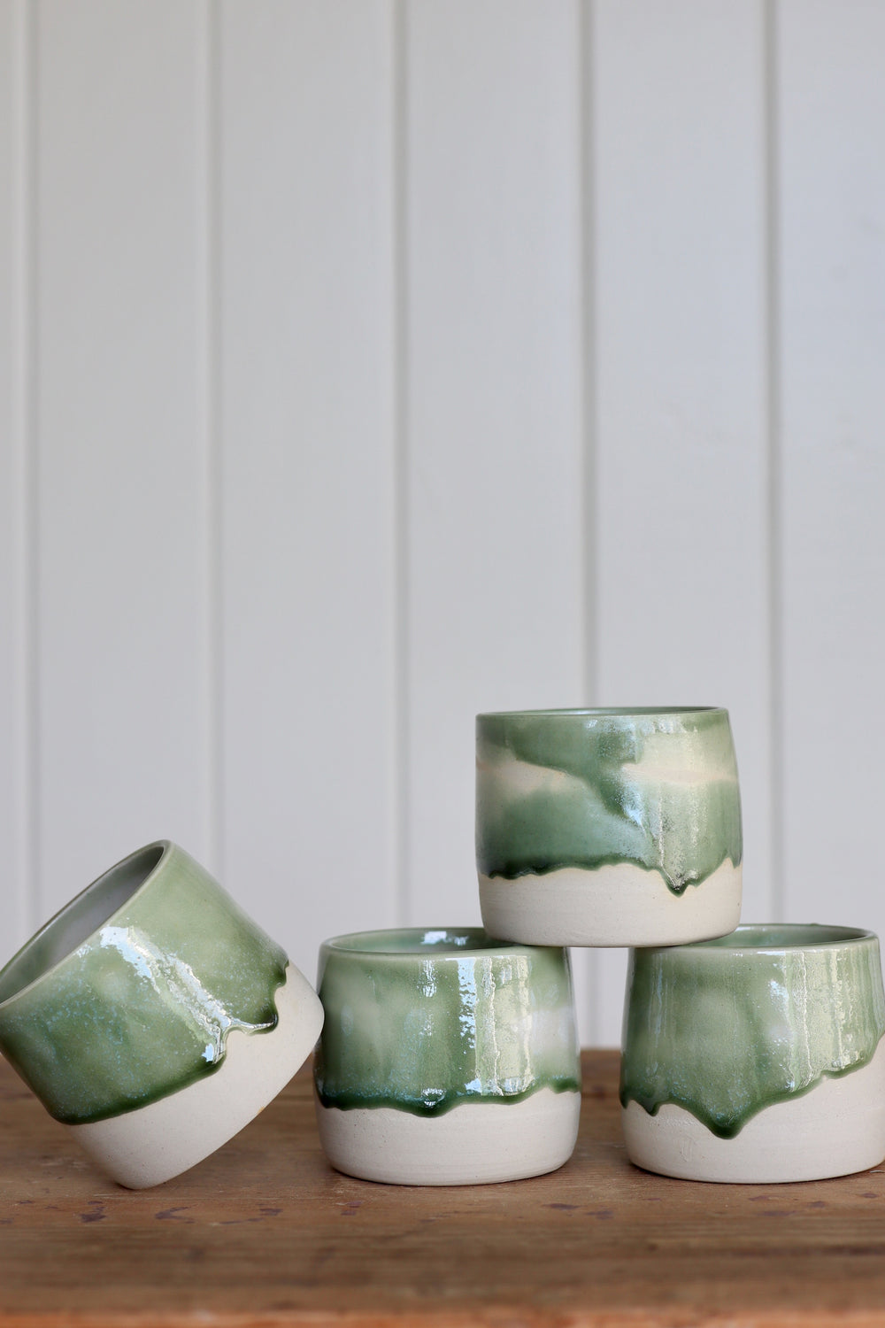 Rounded tumblers in a dripping finish. Perfect for hot or cold drinks